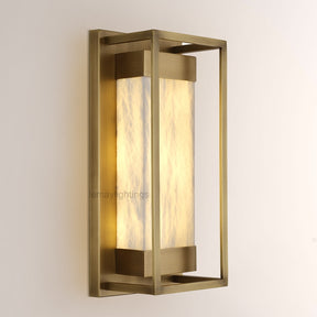 This wall sconce features a textured alabaster glass panel enclosed in a metal frame, blending modern geometric design and natural elegance. Ideal for upscale American living rooms, hallways, or entryways, it casts a warm, diffused glow for refined ambiance.