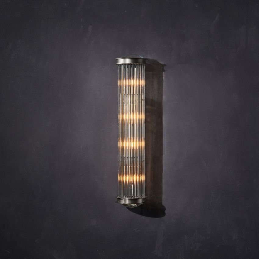 The glamorous Dipa is inspired by unexpected flashes of light in the night,Long prisms of optical grade glass are held tightly together in a staggered effect,. The triangular shape of the prisms reflects and refracts the light on all sides in a shimmering dance of sparkle.