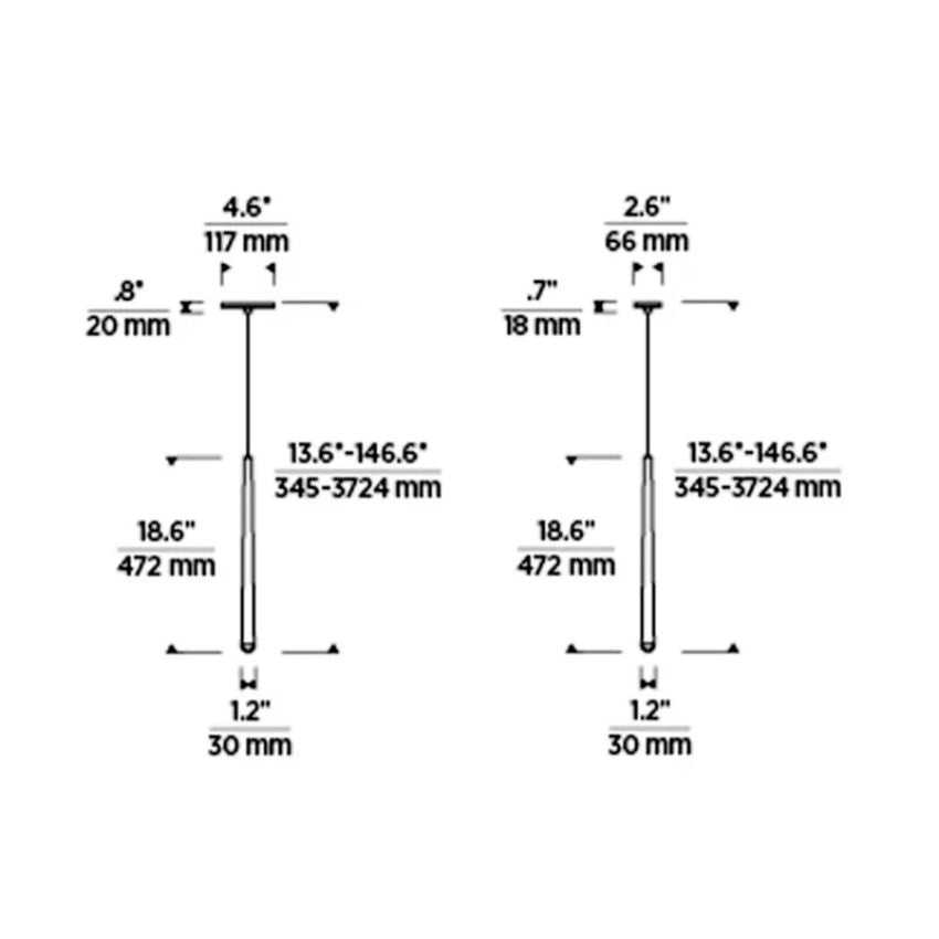 Overall: 1.2″ W x 1.2″ D x 18.6" H x 1.2″ Diam