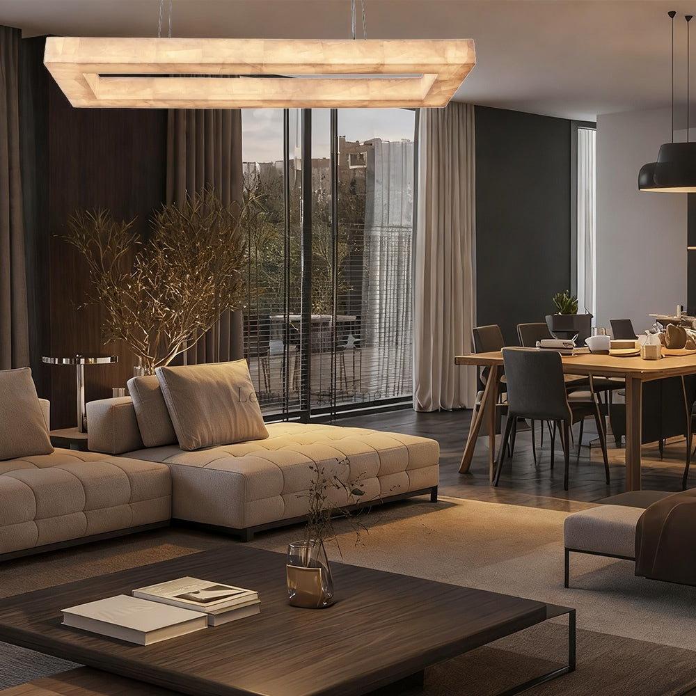 Alabaster Ezreal Rectangular Chandelier 72" - Brass is backordered and will ship as soon as it is back in stock.