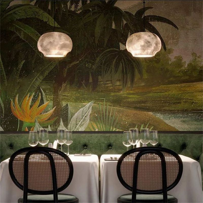 Hanging generously above you, CELINE is the ideal pendant light for a dining room table. Its large dome expands at the base, evoking well-balanced, feminine curves. CELINE offers controlled, soft light to create ambiance for an intimate diner.