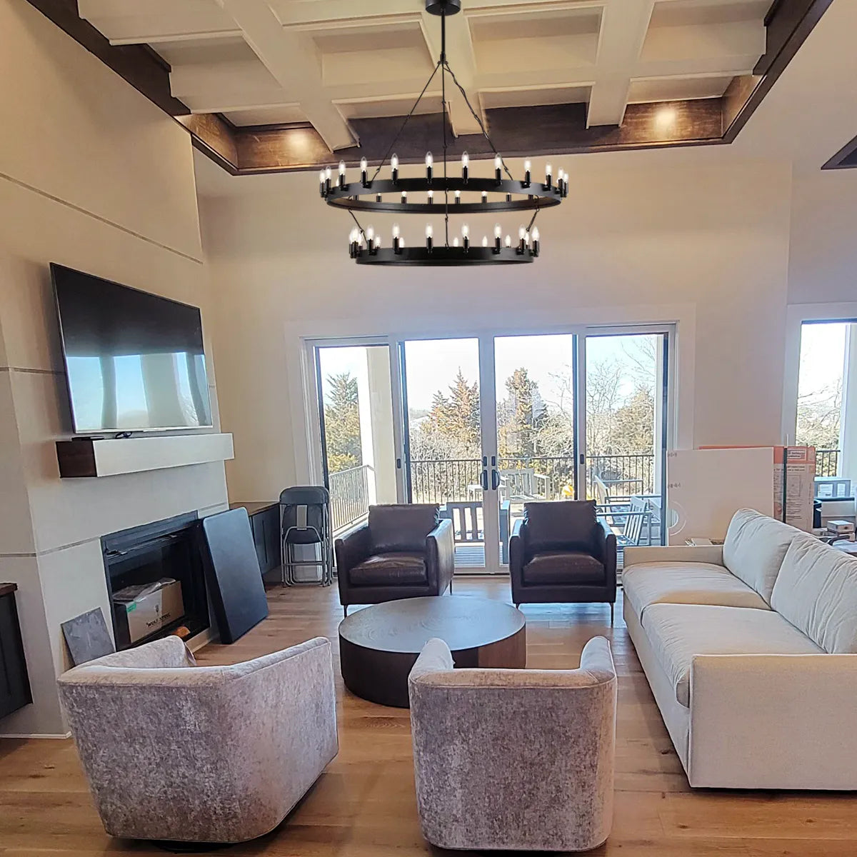 Camia 2-Tier Candelabra Round Chandelier<38"-73"> - Matte Black / 38"D is backordered and will ship as soon as it is back in stock.