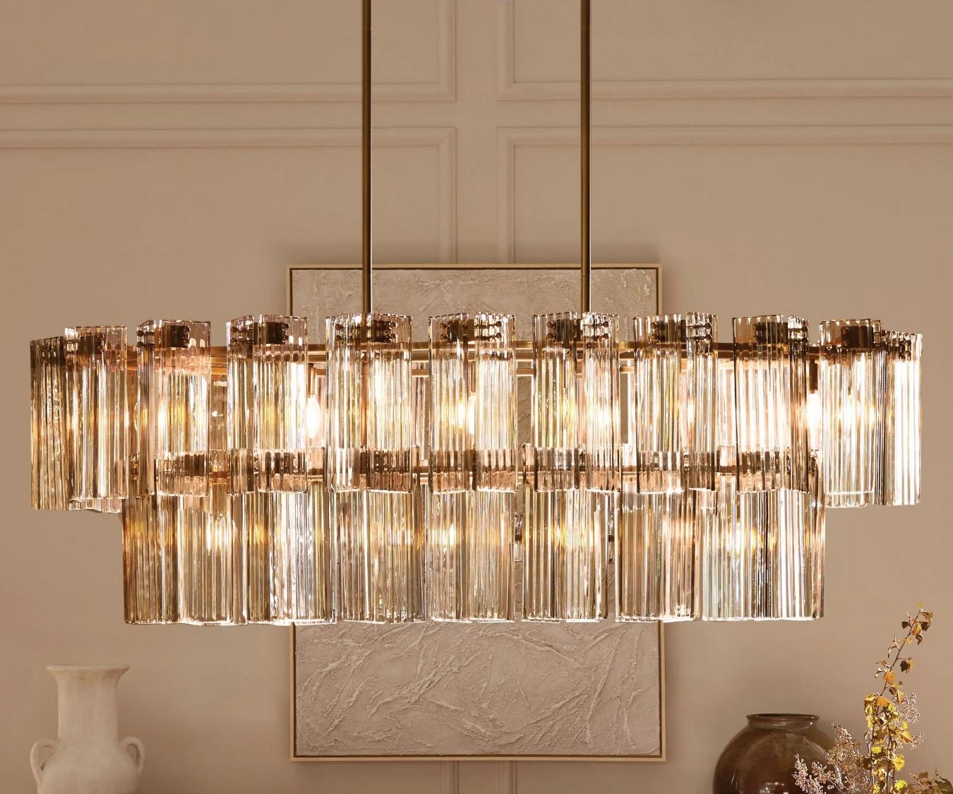 A fresh take on a traditional silhouette, our Delsie Collection radiates old Hollywood glamour. Crafted from reeded glass panels elegantly arranged around a steel frame, Delsie creates dramatic ambiance in any space.