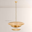 The FloLuxe - series chandelier, with layered brass discs and an elegant chain, blends mid - century charm and luxury, ideal for upscale American spaces.y.