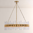 The Hasluxe - series chandelier, with sleek glass rods and polished brass accents, blends modern elegance and luxury, perfect for elevating upscale American interiors.