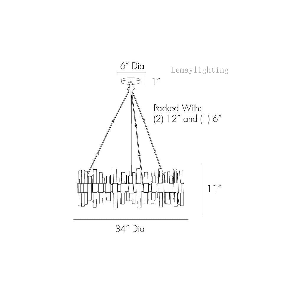 • Chandelier Body:H:29.5IN, Dia:34.00IN