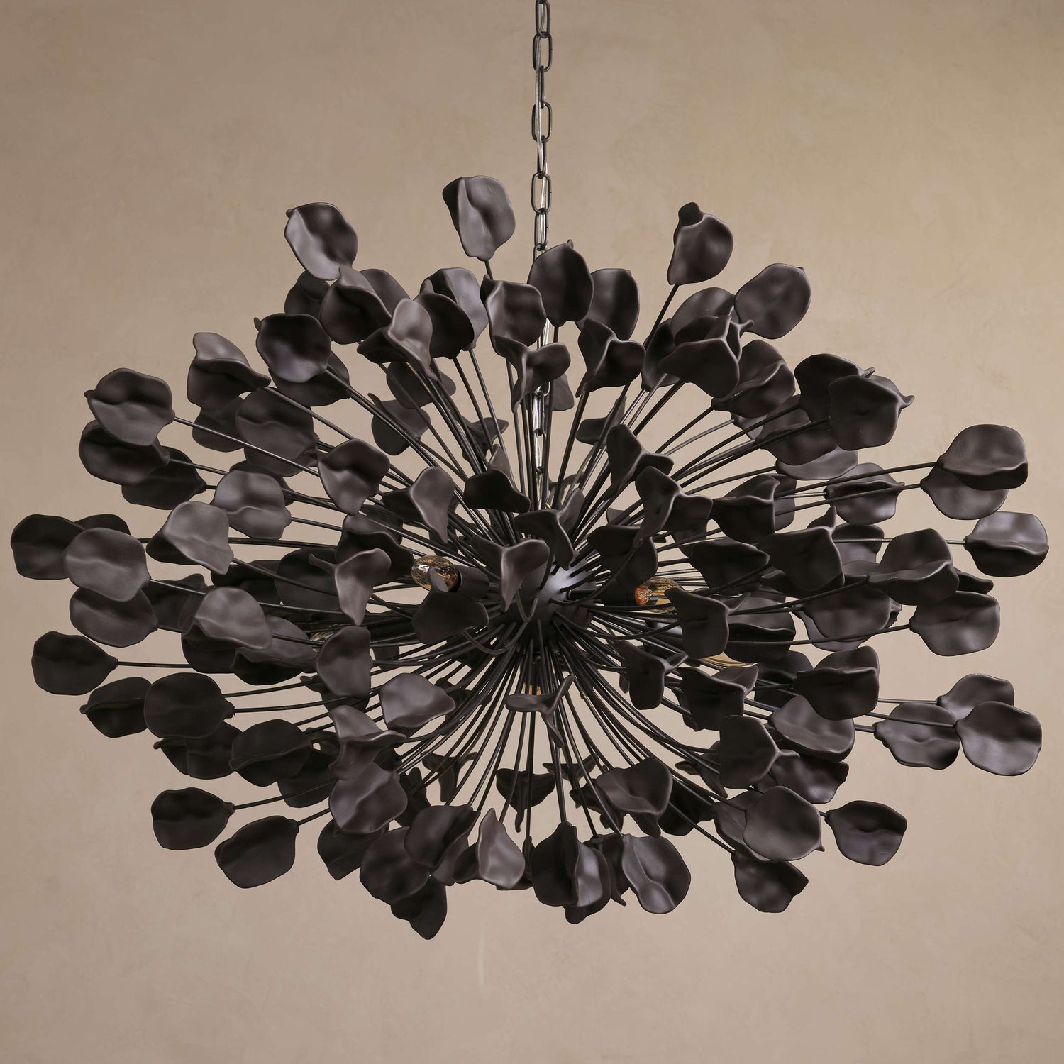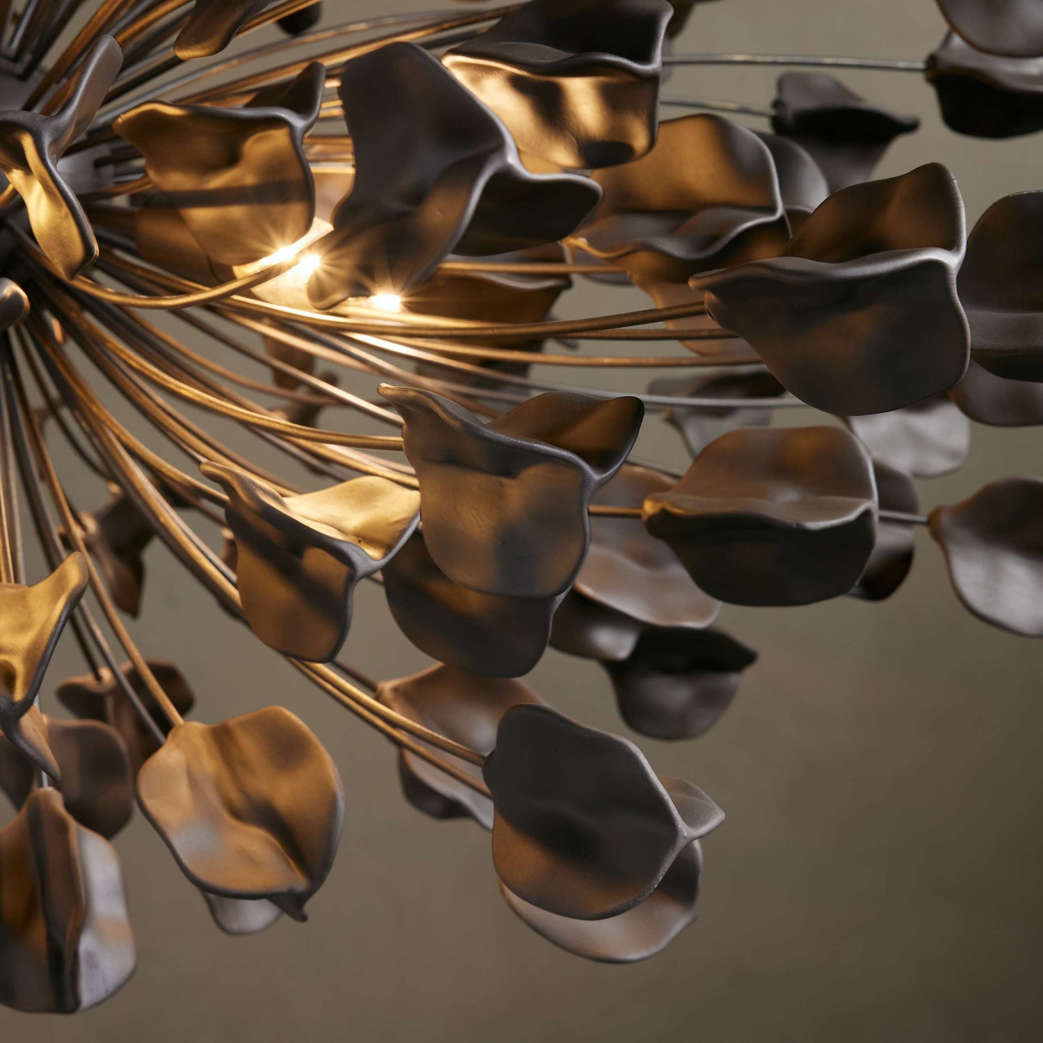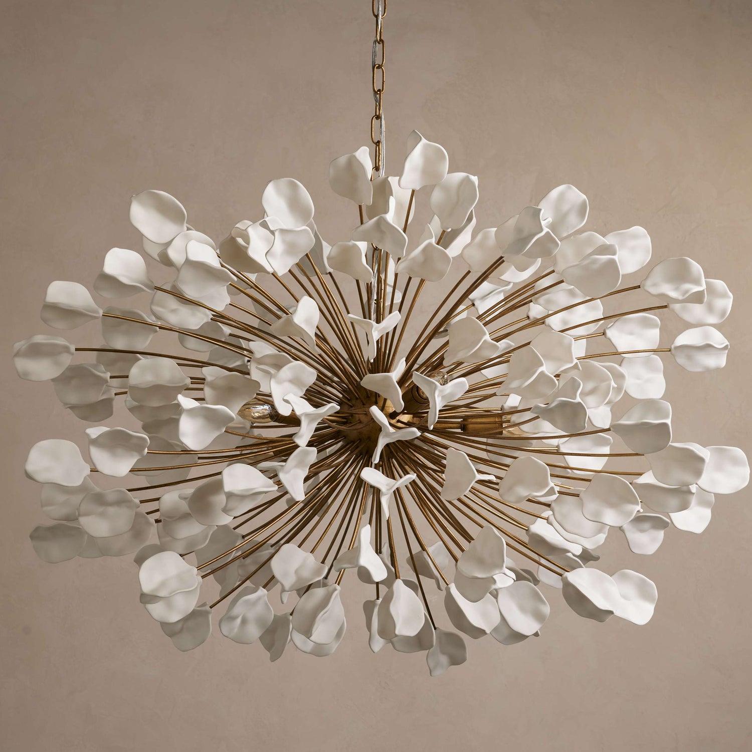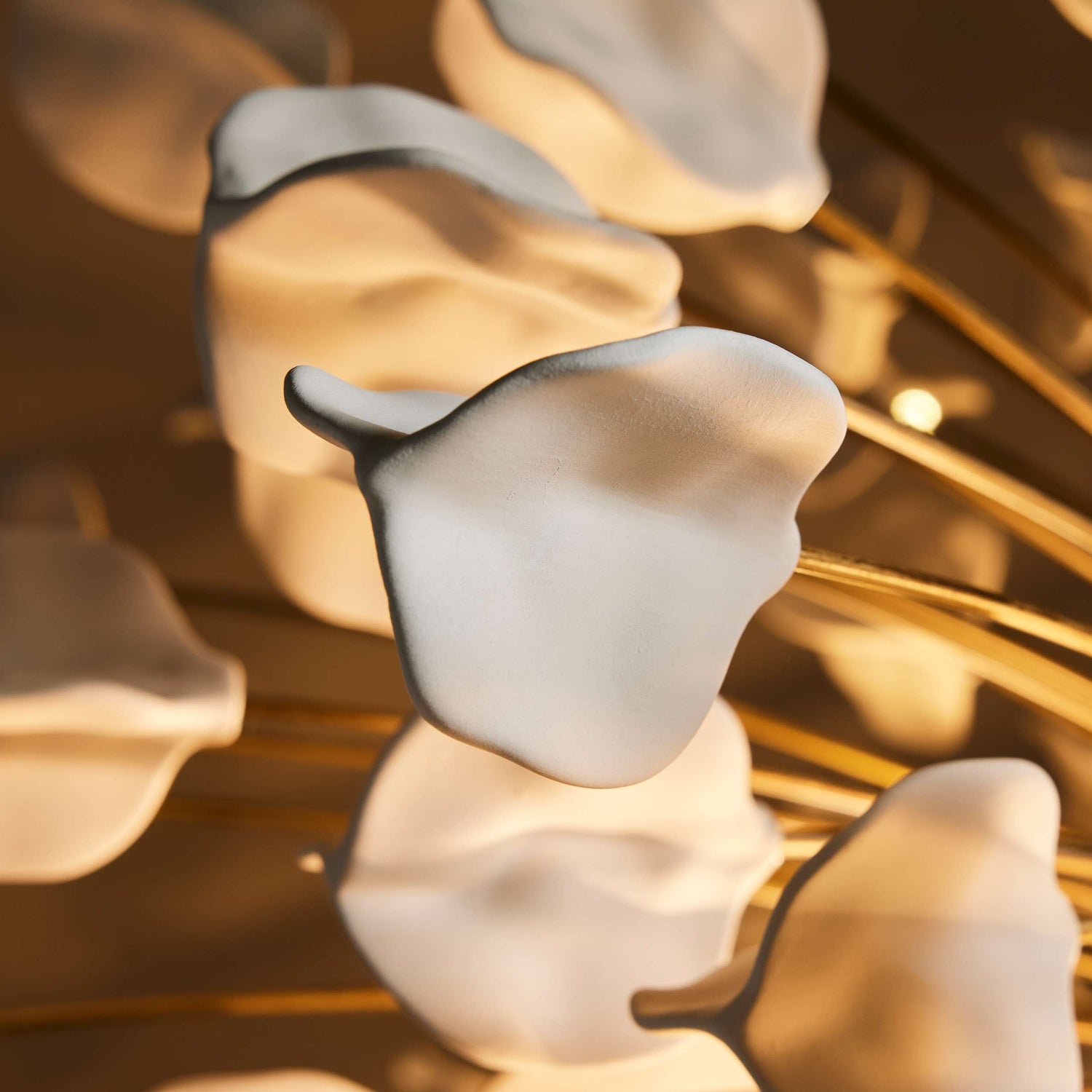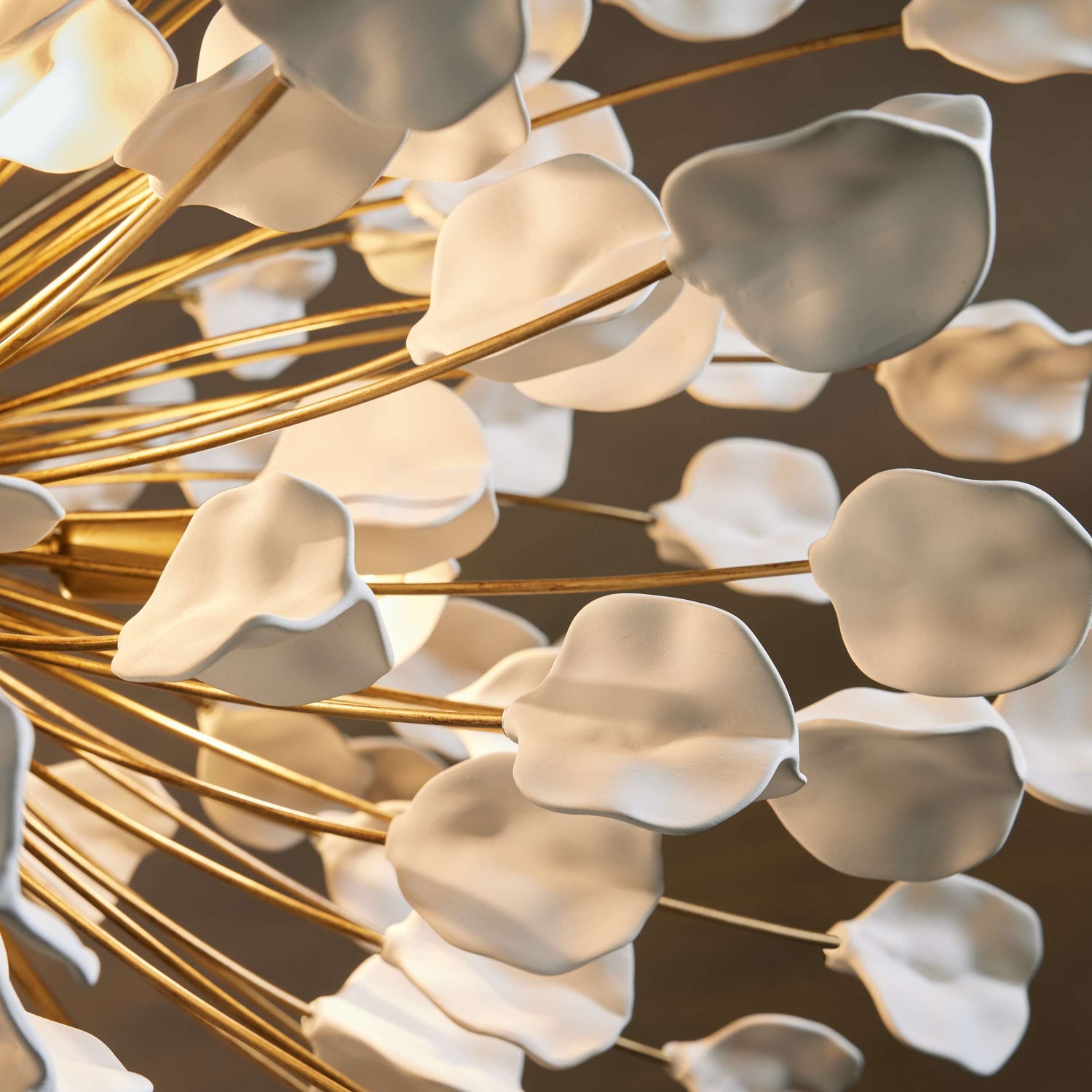 Inspired by the ethereal elegance of the lunaria plant, our Lunaria Lighting Collection captures the delicate beauty of nature in bloom. Handcrafted by ceramic artisans in Italy, each light artfully displays a cluster of ceramic petals that cascade from an iron frame creating a sense of organic movement. Offering a gentle, diffused glow, Lunaria is a luminous statement piece that feels both grounded and otherworldly.
