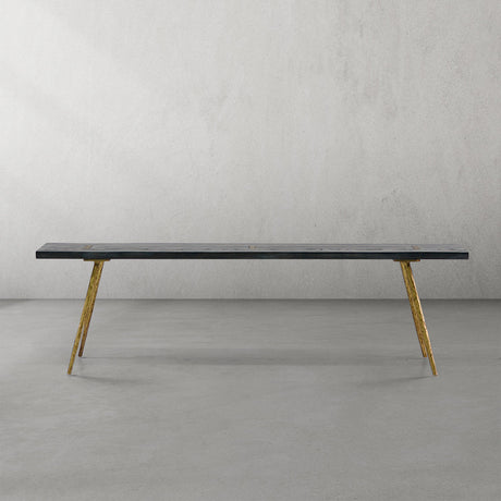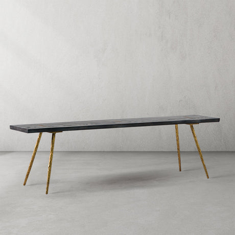 Thaddeus Retro Copper Frame Solid Wood Dining Bench