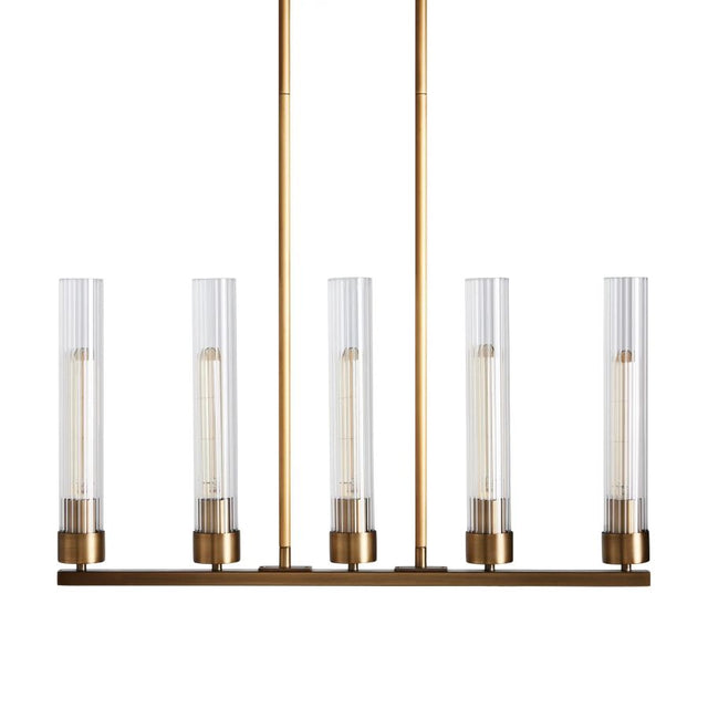Cade Linear Chandelier - Antique Brass / 5-Light is backordered and will ship as soon as it is back in stock.