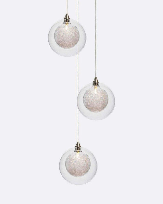 The center orb of each Drizzle pendant is filled with drizzled glassfibers, which are then encased within a pristine, outer glass sphere.Whether you want individual pendants, or a multi-pendant chandelier,you may customize your fixture with as many pendants as you need - altailored to fit your space and your style.