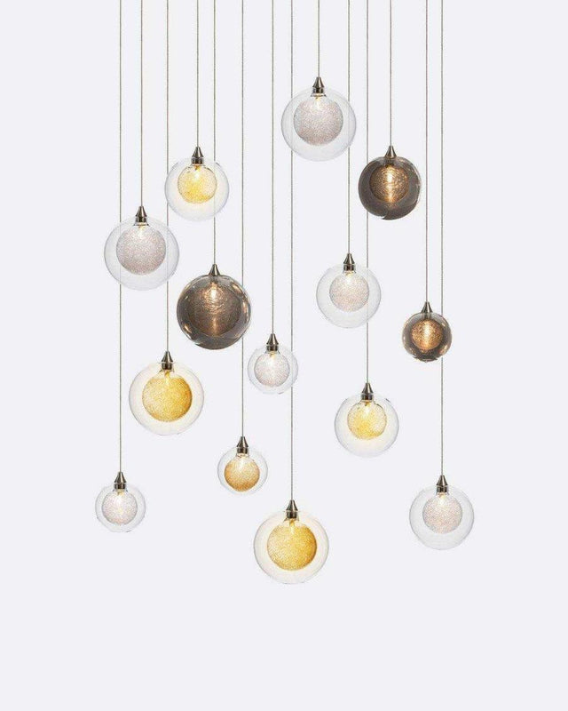 The center orb of each Drizzle pendant is filled with drizzled glassfibers, which are then encased within a pristine, outer glass sphere.Whether you want individual pendants, or a multi-pendant chandelier,you may customize your fixture with as many pendants as you need - altailored to fit your space and your style.