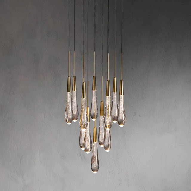 Featuring adjustable PVC cords cascading into integrated LED lights handcrafted from seeded glass, this Lighting Collection mimics the look of a fallen raindrop.