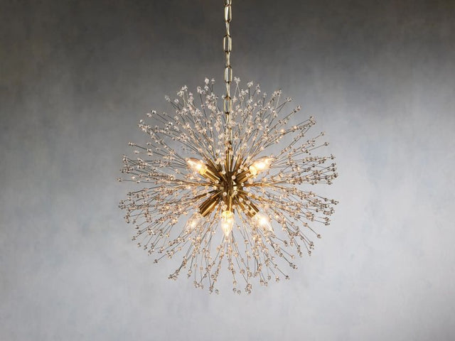 Delightfully designed to resemble a Zen after it’s blossomed, our elegant Zen Chandelier beautifully twinkles with reflected light. Crafted from nickel-plated iron with a painted finish, Zen ’s radiating crystals will add whimsical wonder to any space.