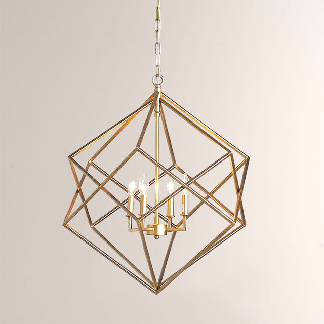Our open-frame Hemisphere Geode Chandelier features a geometric design with clean lines and sharp edges crafted from iron in an antiqued finish. Pair with modern or contemporary décor to make a statement in any space.