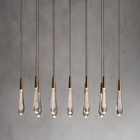 Featuring adjustable PVC cords cascading into integrated LED lights handcrafted from seeded glass, this Lighting Collection mimics the look of a fallen raindrop.
