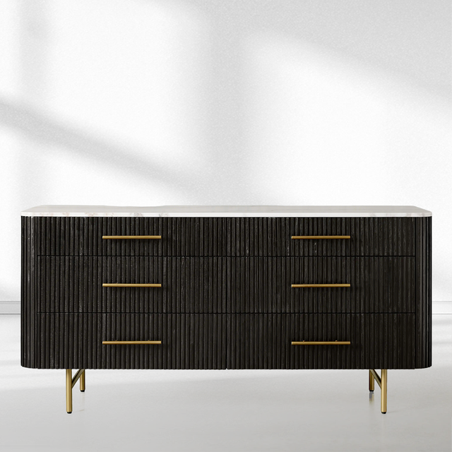 Fimley Six Drawer Dresser - EBONY / WHITE MARBLE is backordered and will ship as soon as it is back in stock.