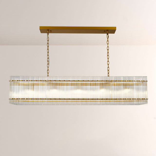 Fiona Rectangular Chandelier 54" - Lacquered Brass is backordered and will ship as soon as it is back in stock.