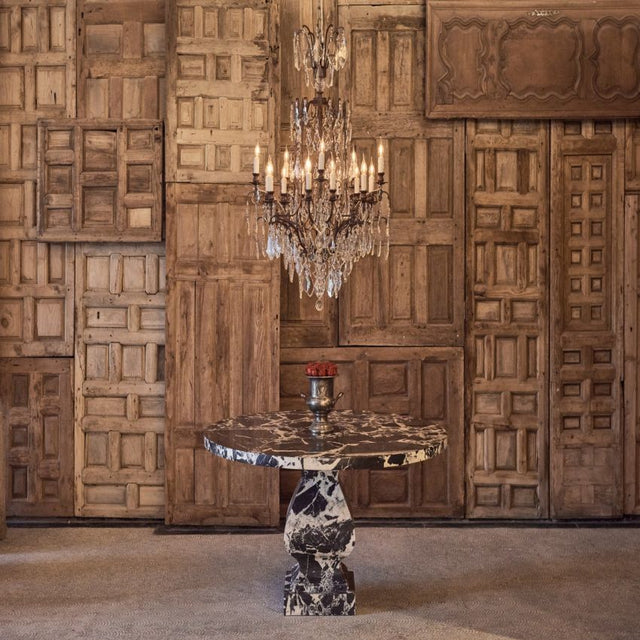 The Crystal chandelier is inspired by the elaborate designs of late Georgian era chandeliers. This handcrafted range features many hallmarks of Georgian design including large crystal baluster centrepieces, precision cut glass crystals, candle lights and corresponding bobeche dishes originally used to collect candlewax. Frame available in natural metal or our proprietary Antique Rust finish.