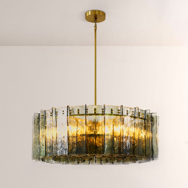 Lustrous, hand-antiqued mirrored-glass panes of various sizes make up the unique shape of our Moroccan-inspired Theodore Lighting Collection. Finished in Antique Copper with just the right amount of shine, this chandelier will add soft, warm light to any room.